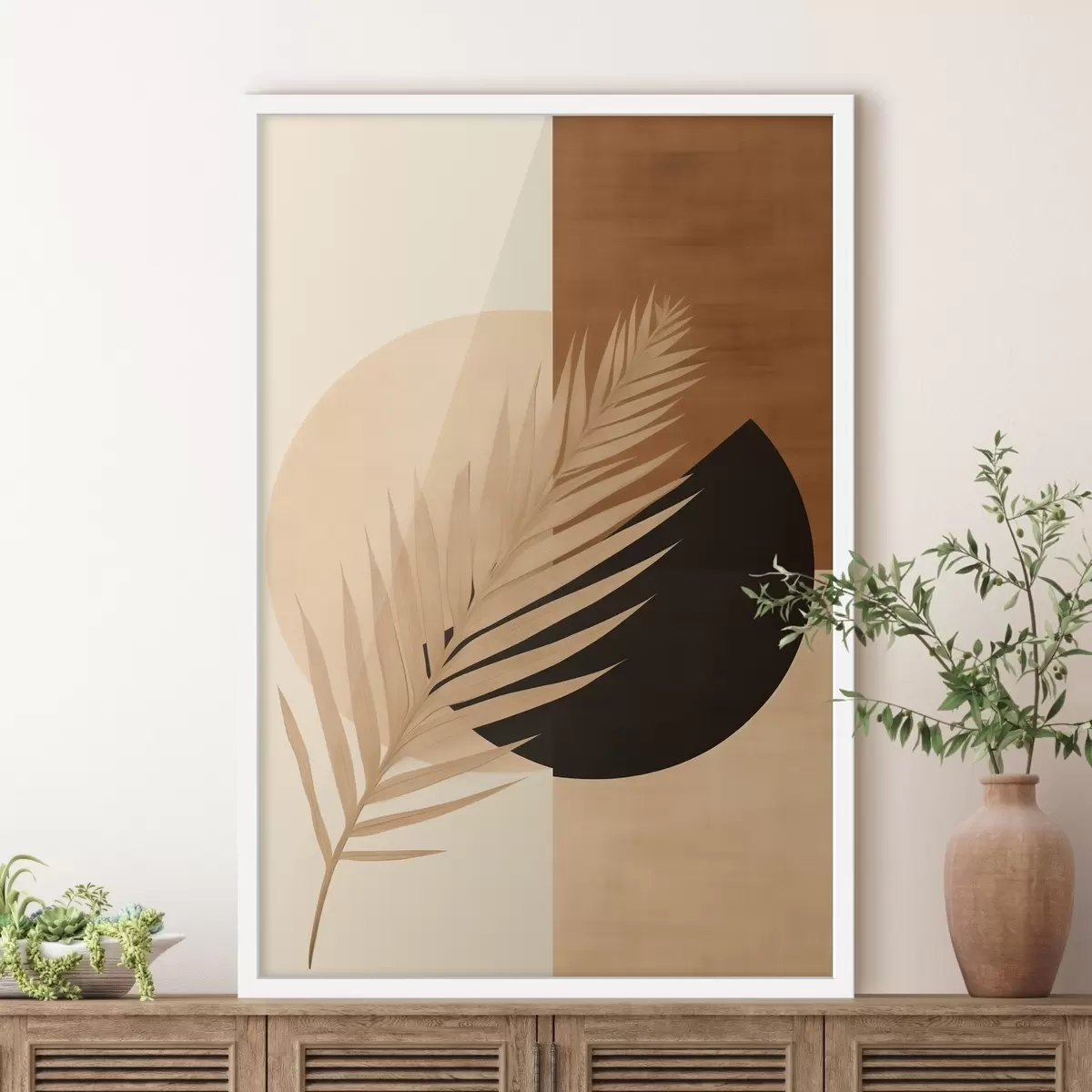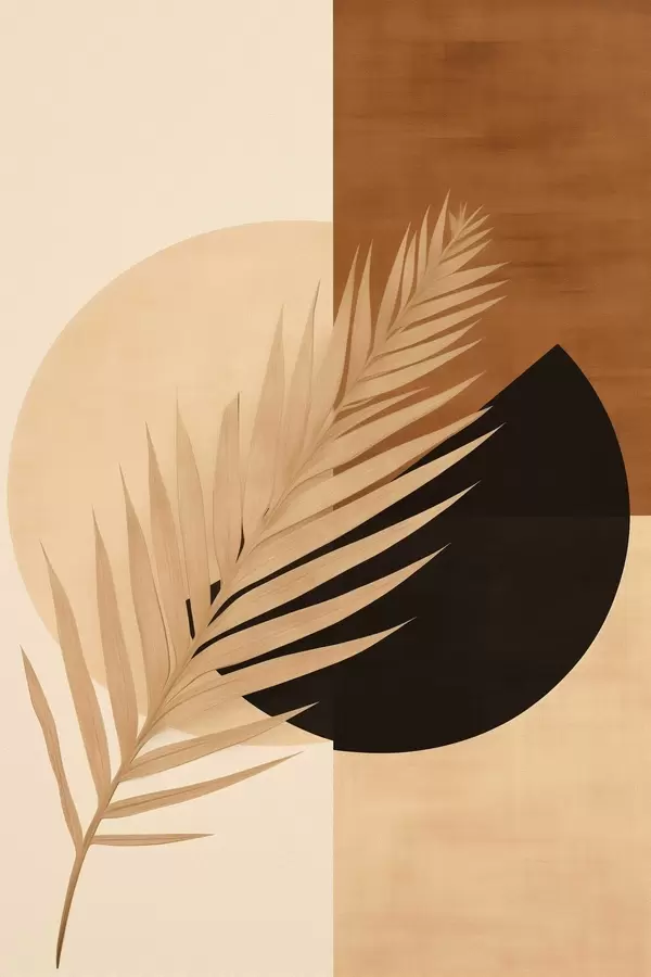 Poster Hoja de palmera sobre geometría en terracota y crema Nr f46490