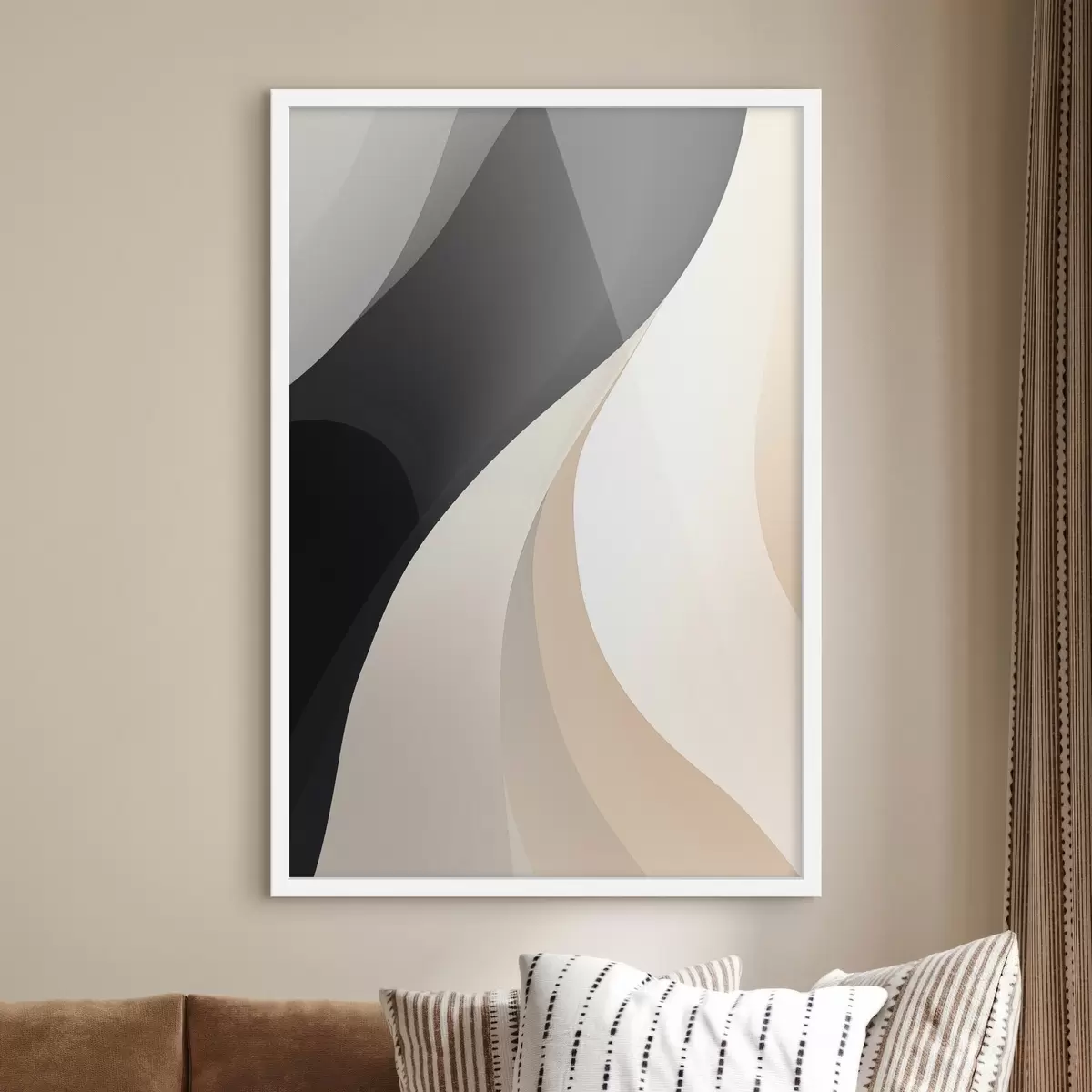 Poster Curvas elegantes y superpuestas en tonos carbón, marfil y arena. Nr f46493