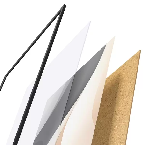 El póster consta de marco, plexiglás, imagen impresa y soporte de aglomerado. El póster puede colgarse inmediatamente en la pared gracias a los soportes de la parte posterior.