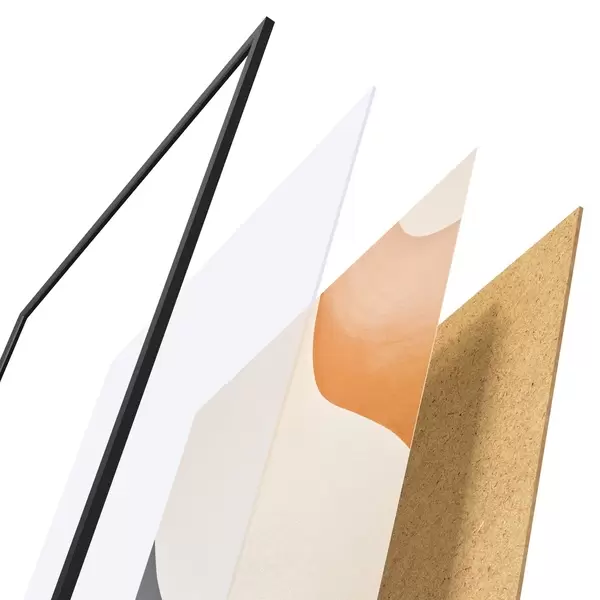 El póster consta de marco, plexiglás, imagen impresa y soporte de aglomerado. El póster puede colgarse inmediatamente en la pared gracias a los soportes de la parte posterior.