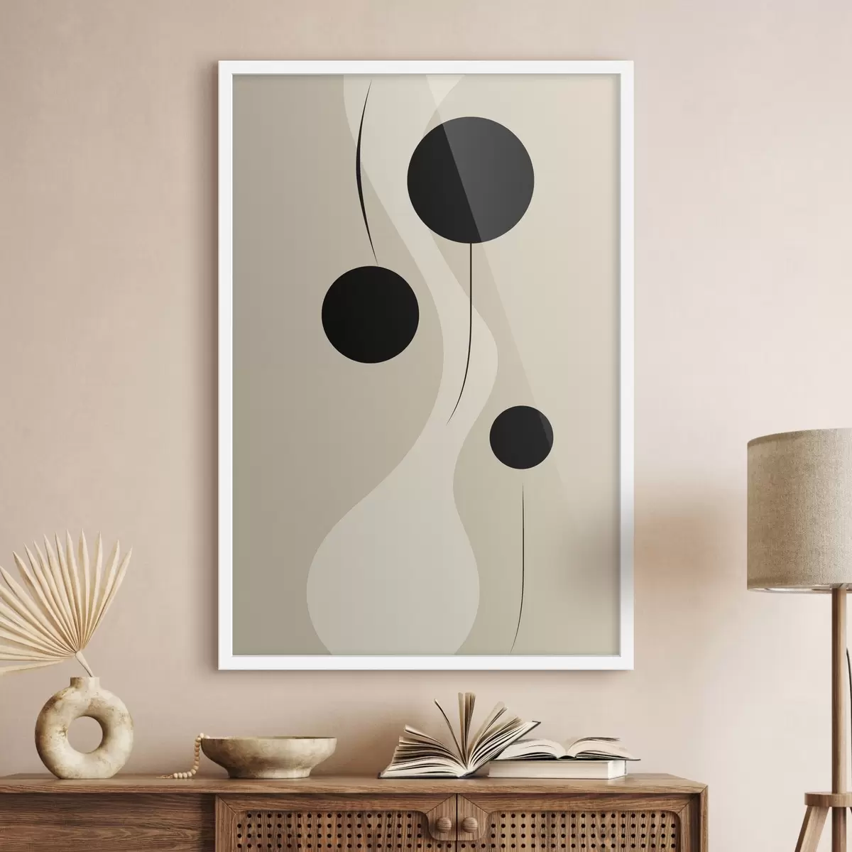 Poster Círculos mínimos sobre fondo beige con acentos de líneas fluidas. f46496