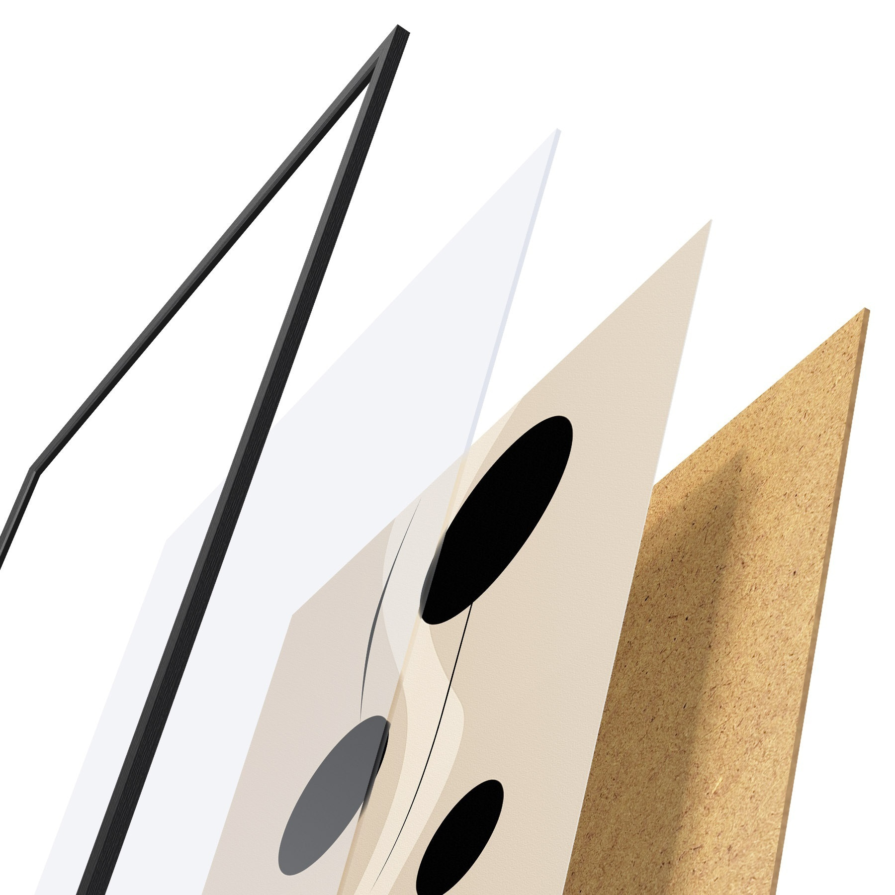 El póster consta de marco, plexiglás, imagen impresa y soporte de aglomerado. El póster puede colgarse inmediatamente en la pared gracias a los soportes de la parte posterior.