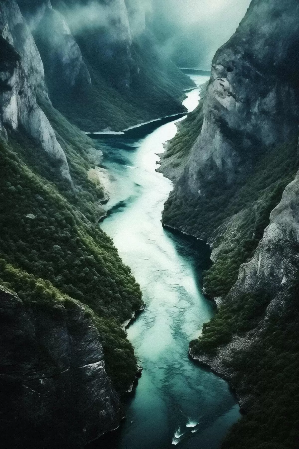 Poster Estrecho desfiladero con una corriente turquesa desde arriba. f46522