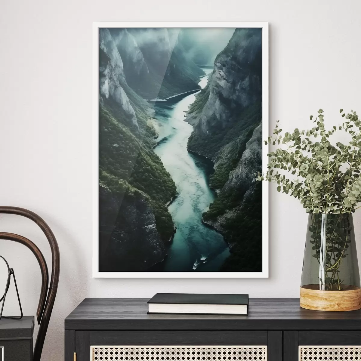 Poster Estrecho desfiladero con una corriente turquesa desde arriba. Nr f46522