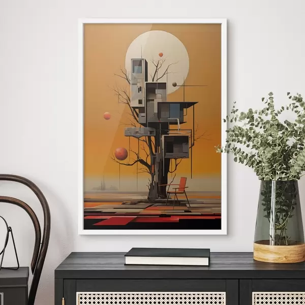 Poster Casa del árbol surrealista sobre un fondo naranja Nr f46526