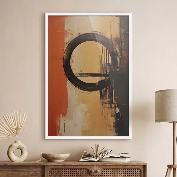 Poster Resumen con un anillo negro sobre fondo terracota-arena. f46529