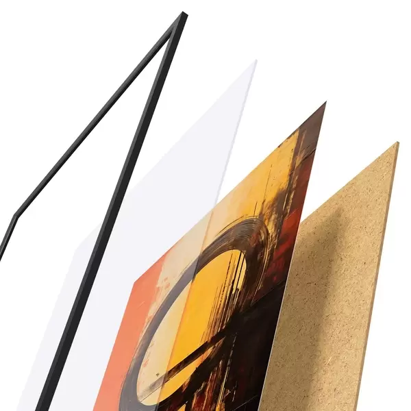 El póster consta de marco, plexiglás, imagen impresa y soporte de aglomerado. El póster puede colgarse inmediatamente en la pared gracias a los soportes de la parte posterior.