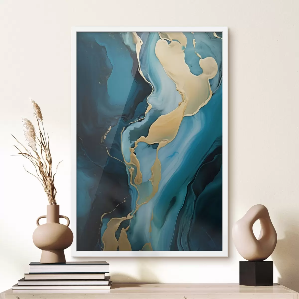 Poster Azul verdoso abstracto con un chorro de ocre f46530