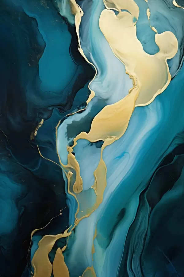 Poster Azul verdoso abstracto con un chorro de ocre Nr f46530