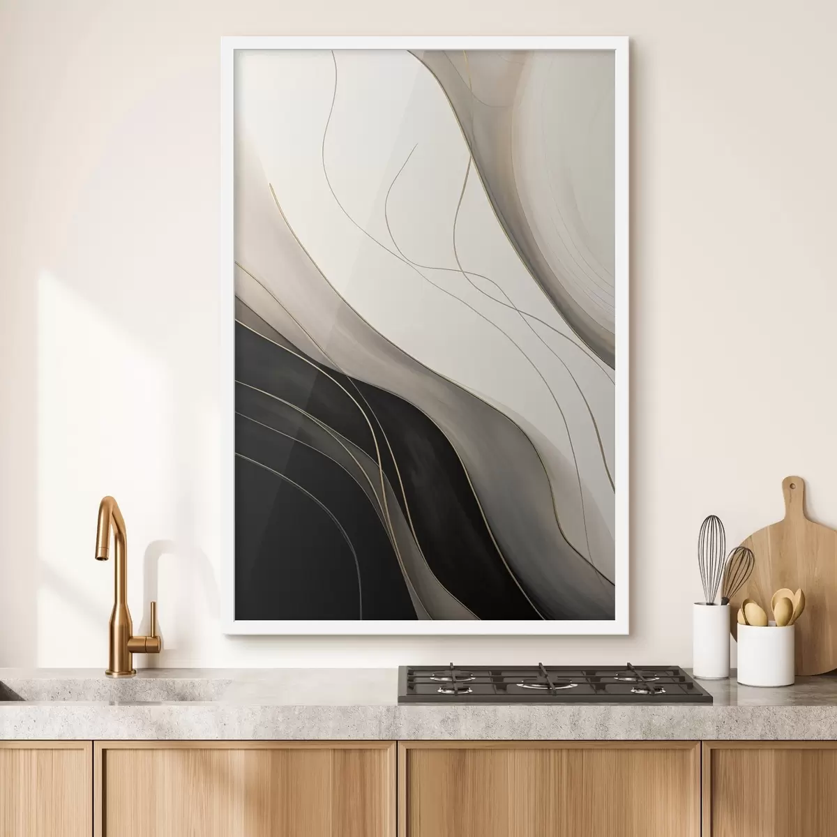 Poster Ondas en negro y beige con finas líneas ocres. Nr f46541