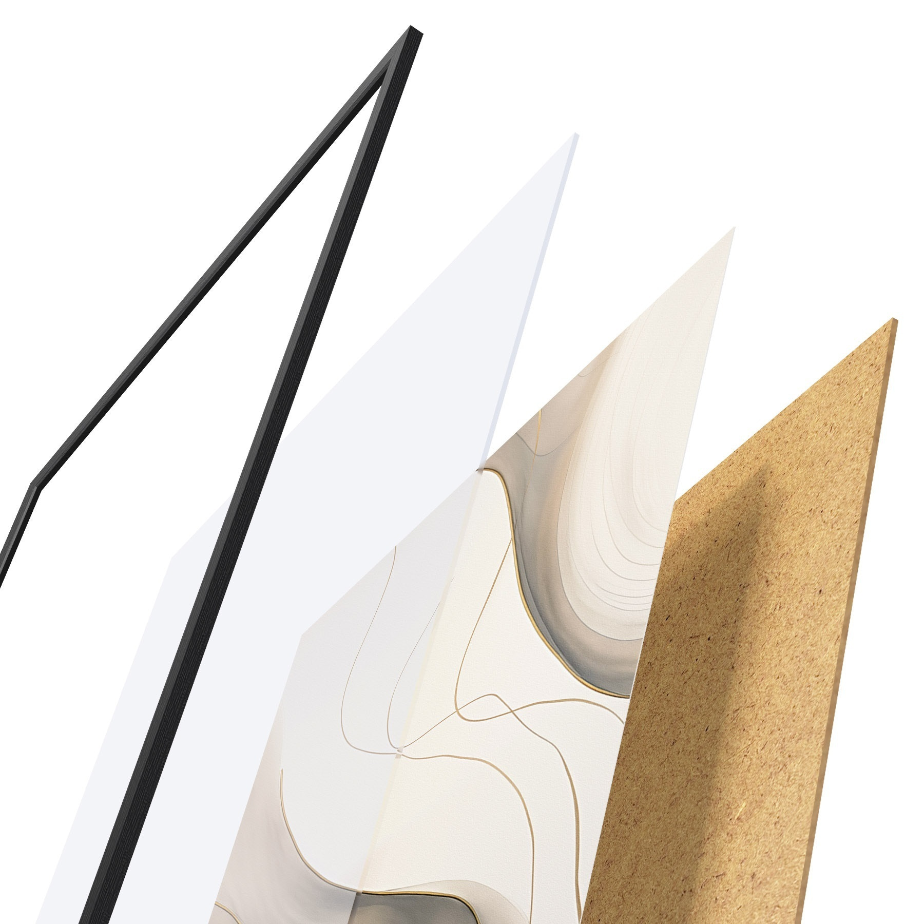 El póster consta de marco, plexiglás, imagen impresa y soporte de aglomerado. El póster puede colgarse inmediatamente en la pared gracias a los soportes de la parte posterior.