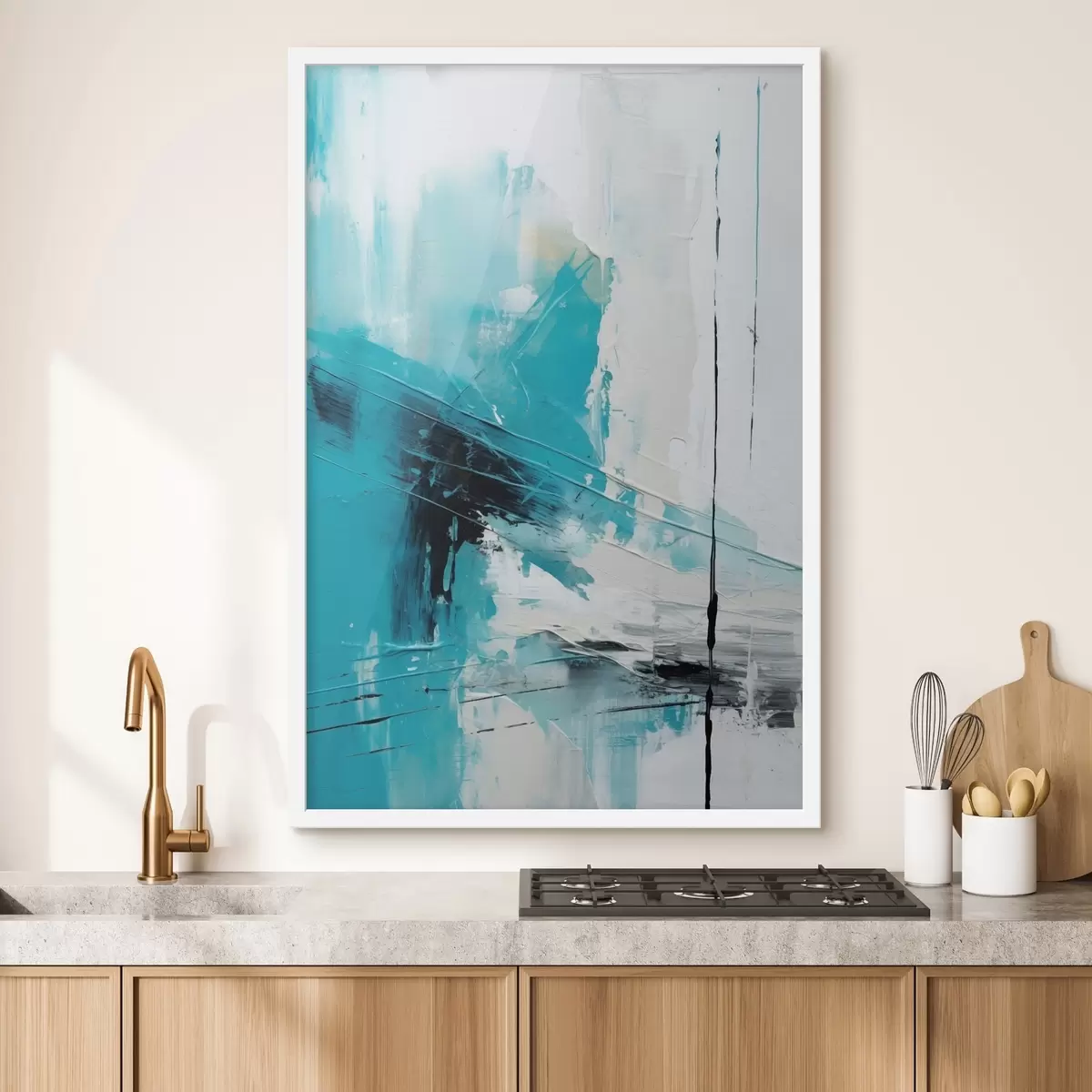 Poster Trazos turquesa sobre fondo blanco con un guión negro. Nr f46545