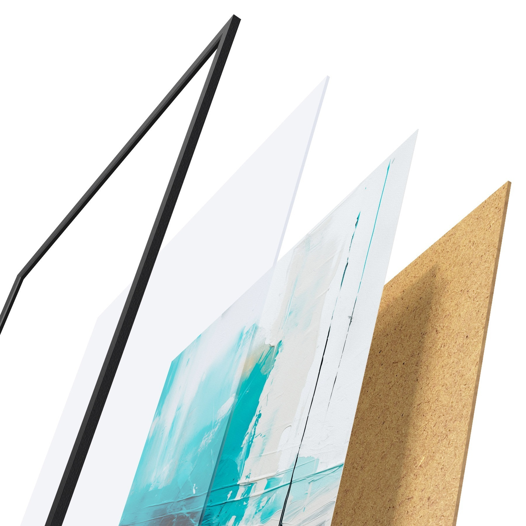 El póster consta de marco, plexiglás, imagen impresa y soporte de aglomerado. El póster puede colgarse inmediatamente en la pared gracias a los soportes de la parte posterior.