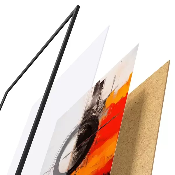 El póster consta de marco, plexiglás, imagen impresa y soporte de aglomerado. El póster puede colgarse inmediatamente en la pared gracias a los soportes de la parte posterior.