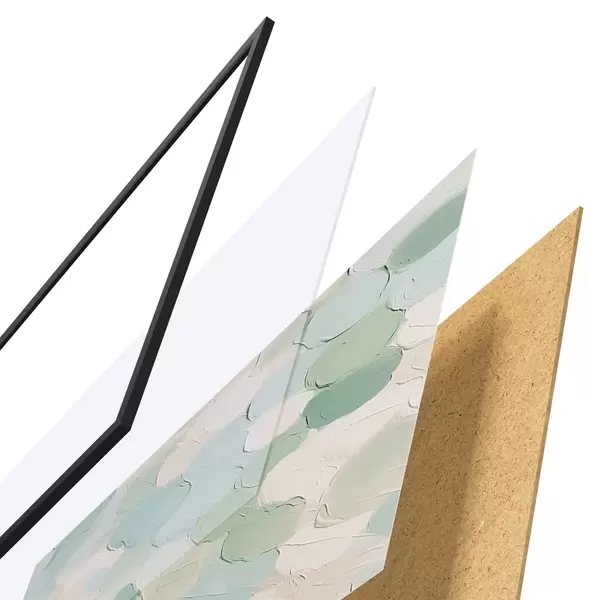 El póster consta de marco, plexiglás, imagen impresa y soporte de aglomerado. El póster puede colgarse inmediatamente en la pared gracias a los soportes de la parte posterior.
