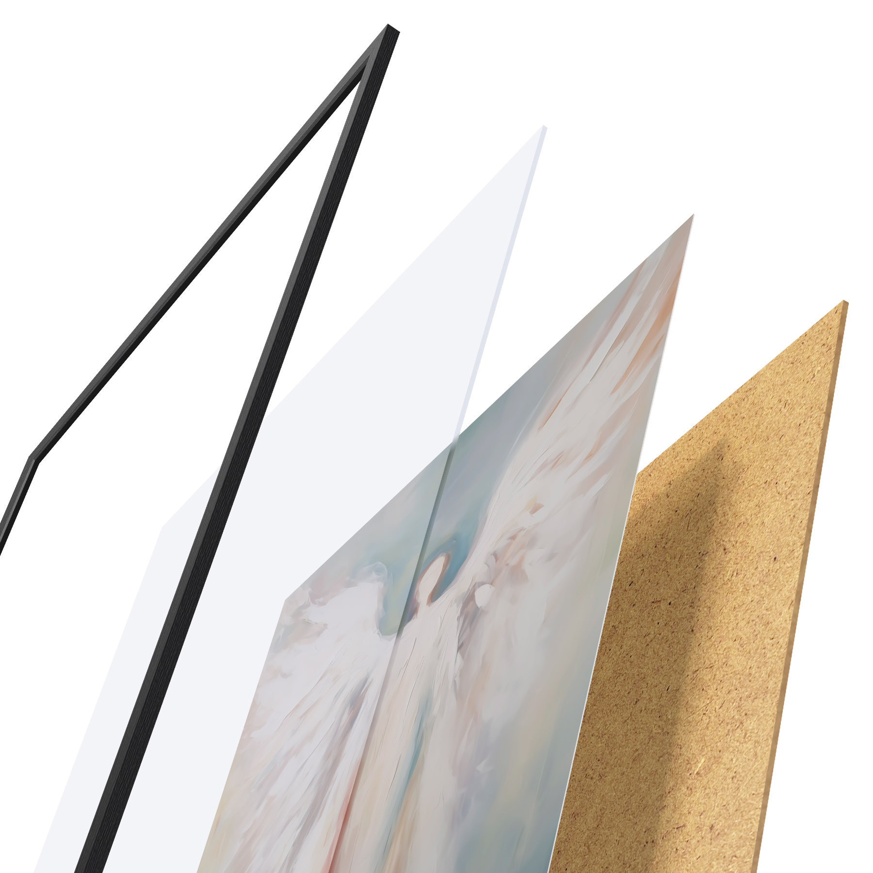 El póster consta de marco, plexiglás, imagen impresa y soporte de aglomerado. El póster puede colgarse inmediatamente en la pared gracias a los soportes de la parte posterior.