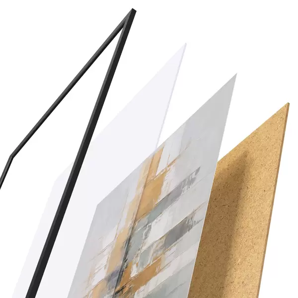 El póster consta de marco, plexiglás, imagen impresa y soporte de aglomerado. El póster puede colgarse inmediatamente en la pared gracias a los soportes de la parte posterior.