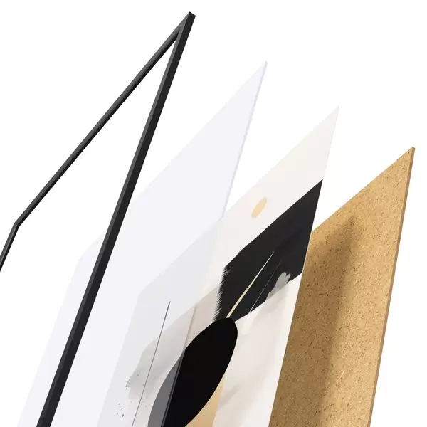 El póster consta de marco, plexiglás, imagen impresa y soporte de aglomerado. El póster puede colgarse inmediatamente en la pared gracias a los soportes de la parte posterior.