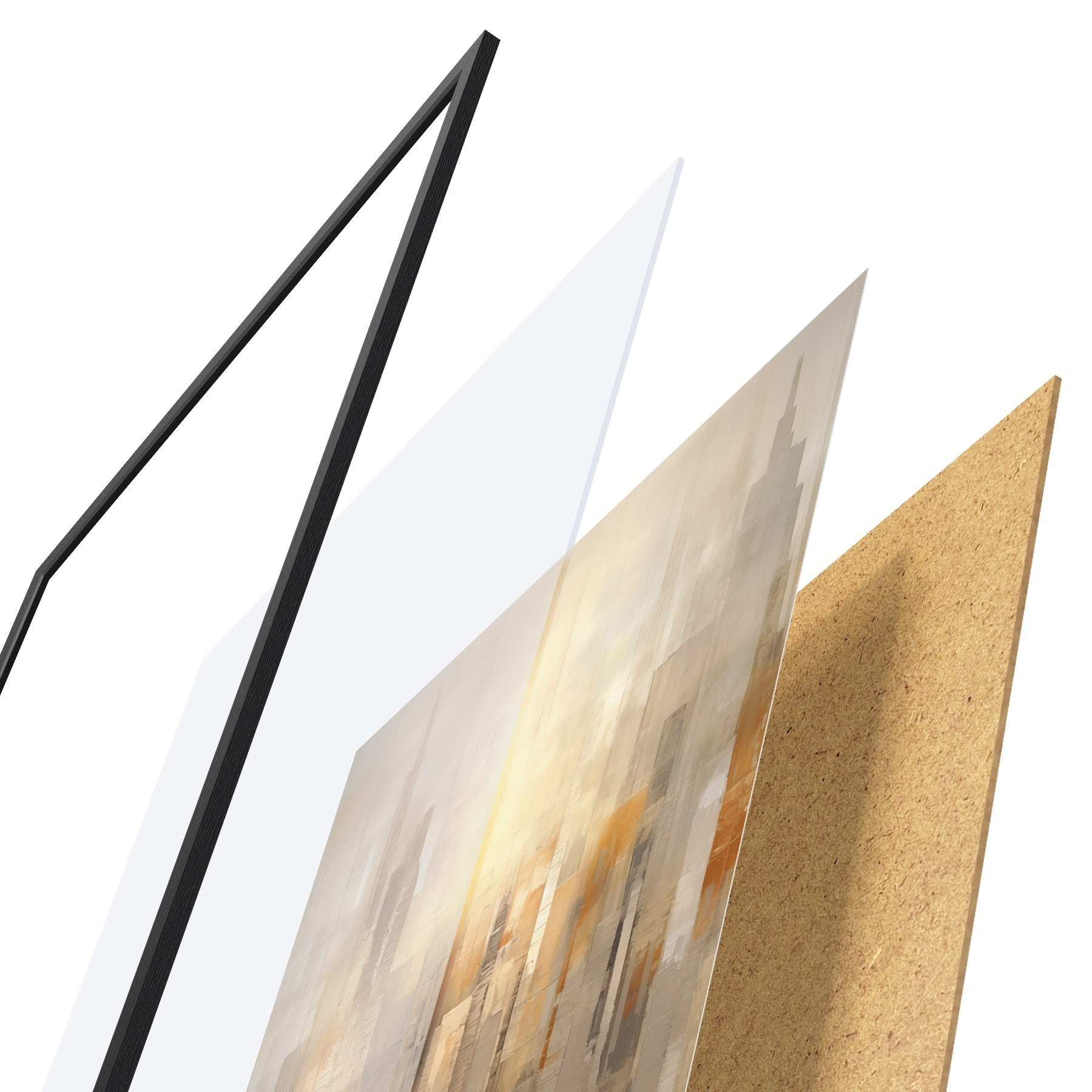 El póster consta de marco, plexiglás, imagen impresa y soporte de aglomerado. El póster puede colgarse inmediatamente en la pared gracias a los soportes de la parte posterior.