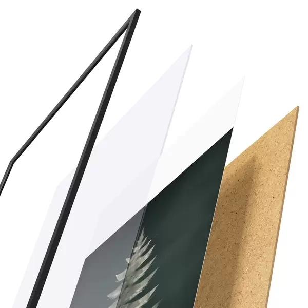 El póster consta de marco, plexiglás, imagen impresa y soporte de aglomerado. El póster puede colgarse inmediatamente en la pared gracias a los soportes de la parte posterior.