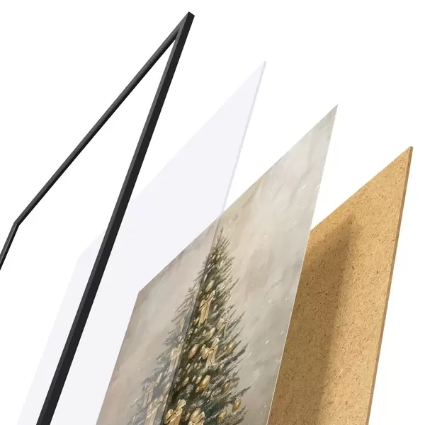 El póster consta de marco, plexiglás, imagen impresa y soporte de aglomerado. El póster puede colgarse inmediatamente en la pared gracias a los soportes de la parte posterior.