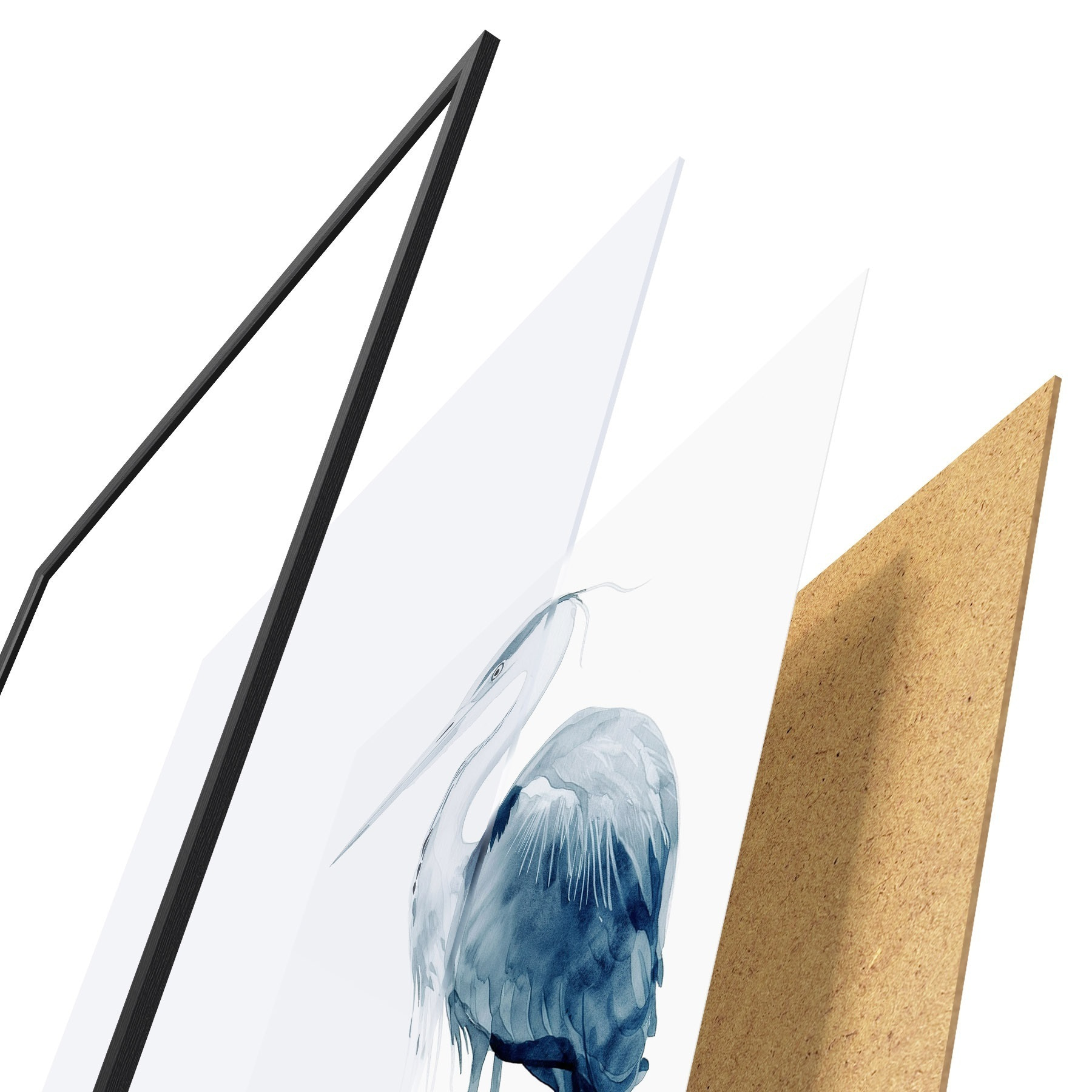 El póster consta de marco, plexiglás, imagen impresa y soporte de aglomerado. El póster puede colgarse inmediatamente en la pared gracias a los soportes de la parte posterior.
