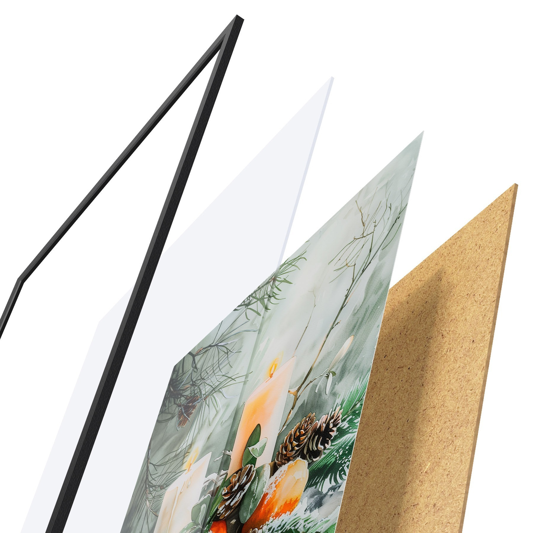 El póster consta de marco, plexiglás, imagen impresa y soporte de aglomerado. El póster puede colgarse inmediatamente en la pared gracias a los soportes de la parte posterior.