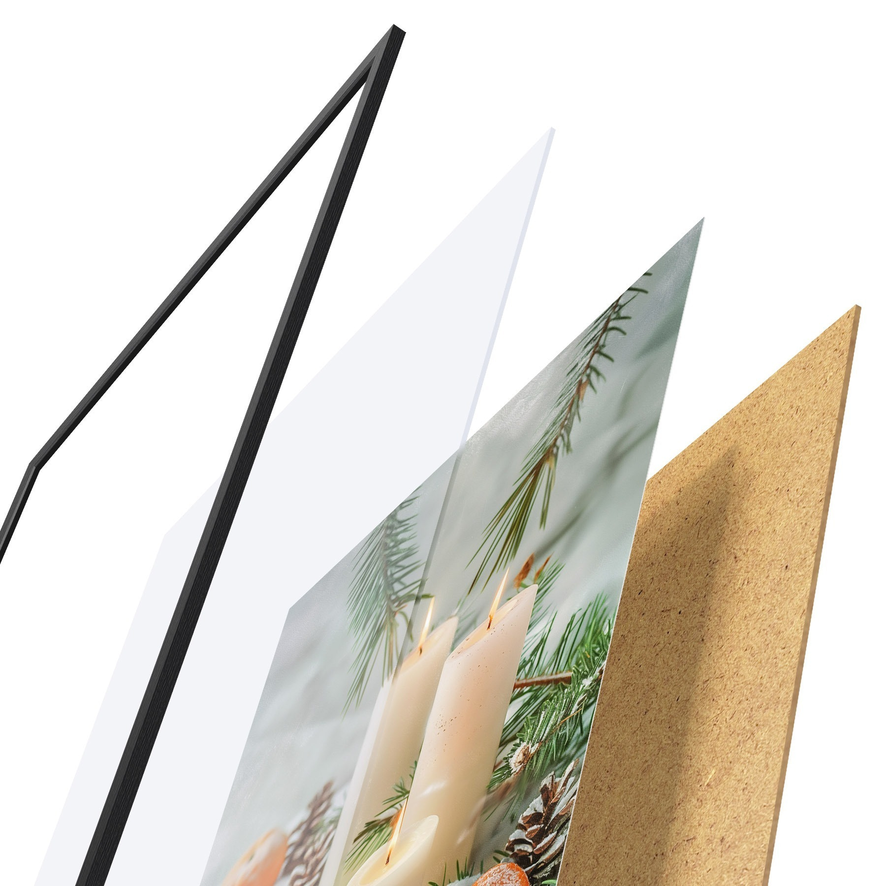 El póster consta de marco, plexiglás, imagen impresa y soporte de aglomerado. El póster puede colgarse inmediatamente en la pared gracias a los soportes de la parte posterior.