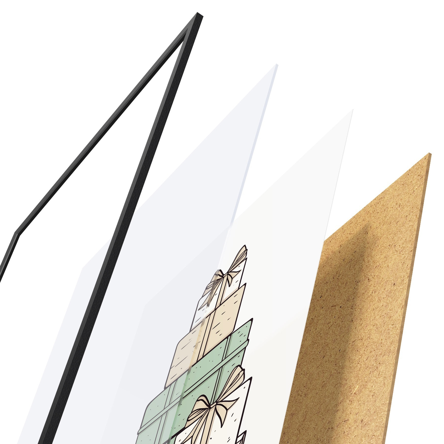 El póster consta de marco, plexiglás, imagen impresa y soporte de aglomerado. El póster puede colgarse inmediatamente en la pared gracias a los soportes de la parte posterior.