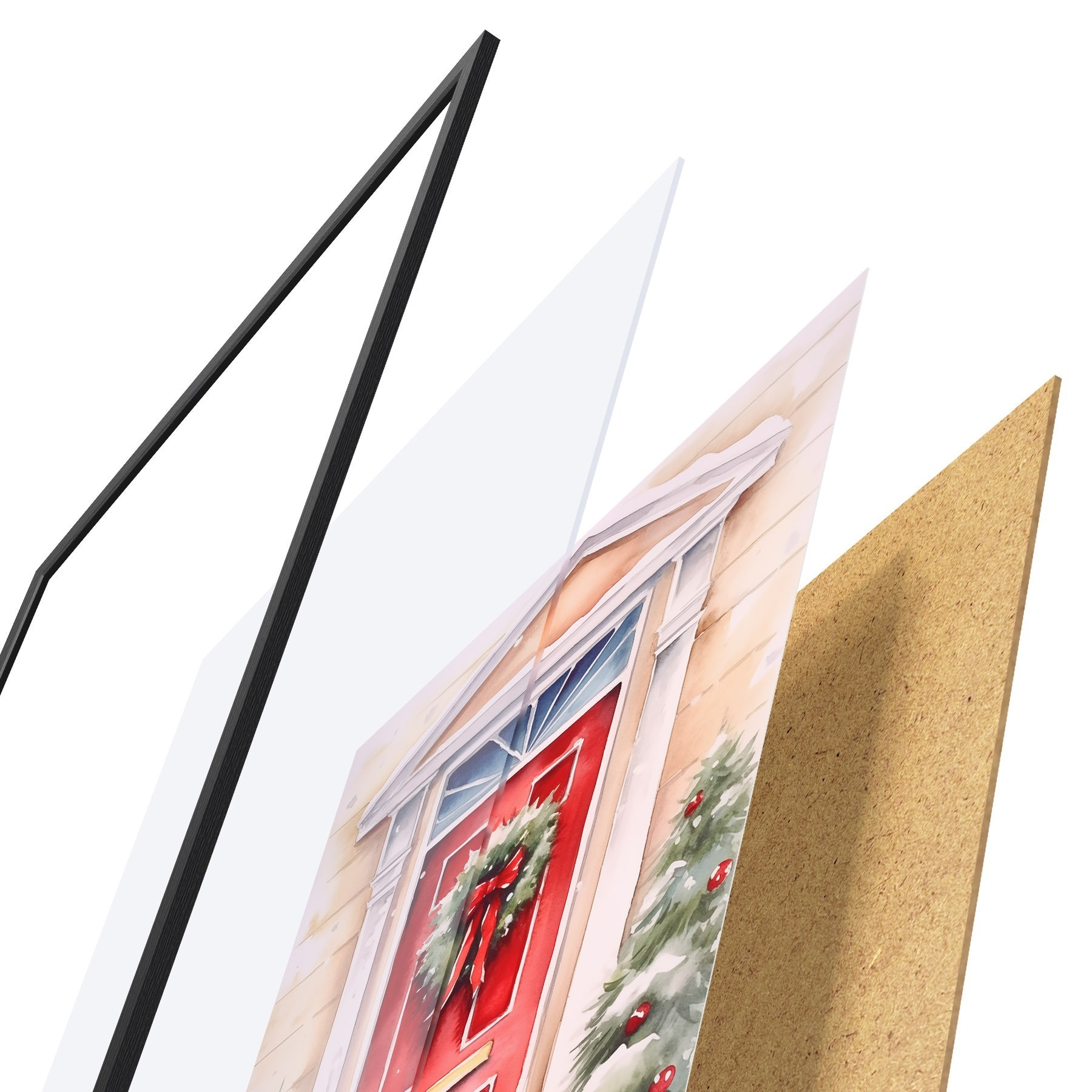El póster consta de marco, plexiglás, imagen impresa y soporte de aglomerado. El póster puede colgarse inmediatamente en la pared gracias a los soportes de la parte posterior.