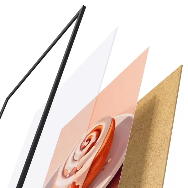 El póster consta de marco, plexiglás, imagen impresa y soporte de aglomerado. El póster puede colgarse inmediatamente en la pared gracias a los soportes de la parte posterior.