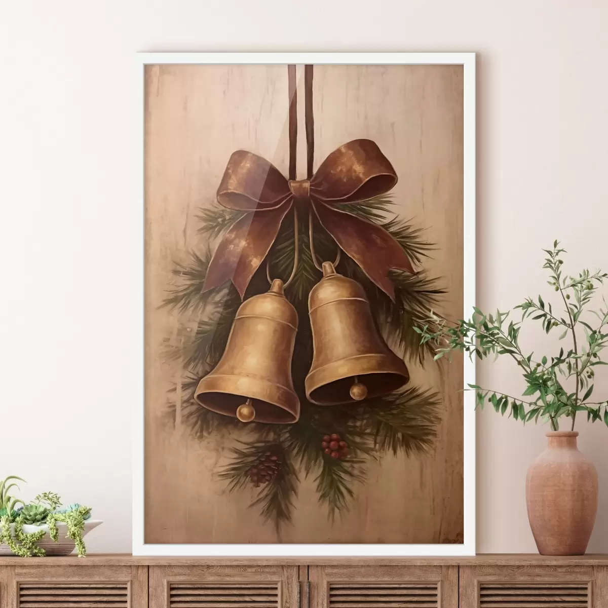 Poster Decoración navideña vintage con dos campanas y un lazo. Nr f46626