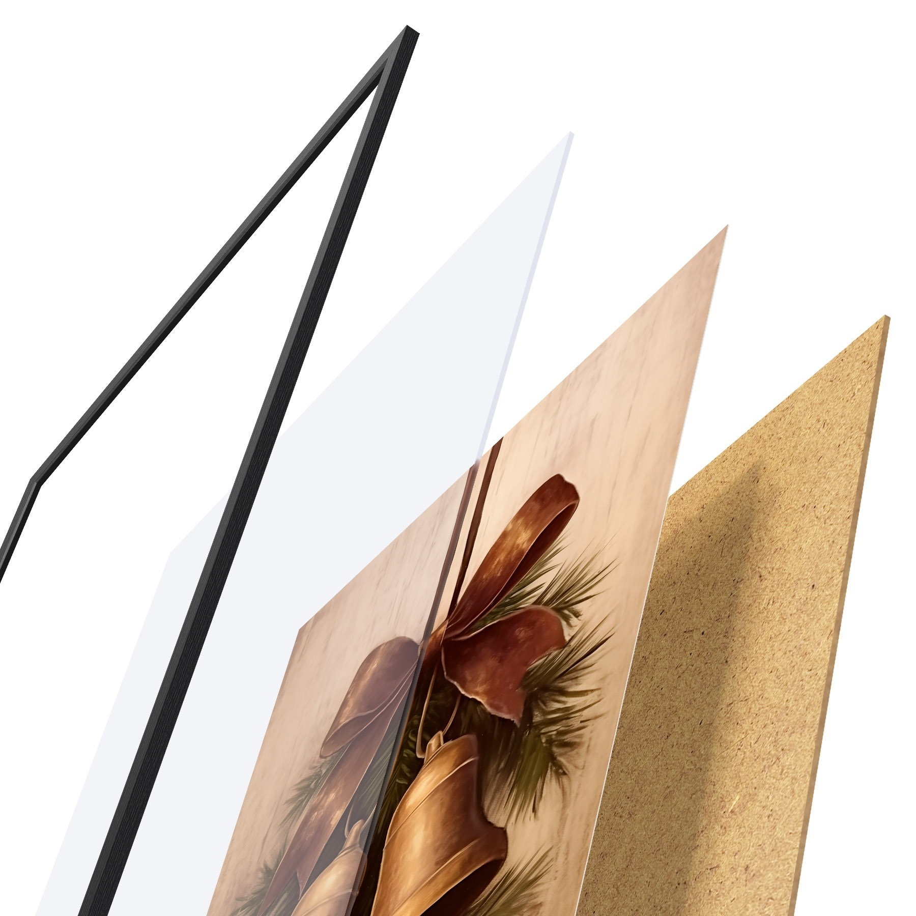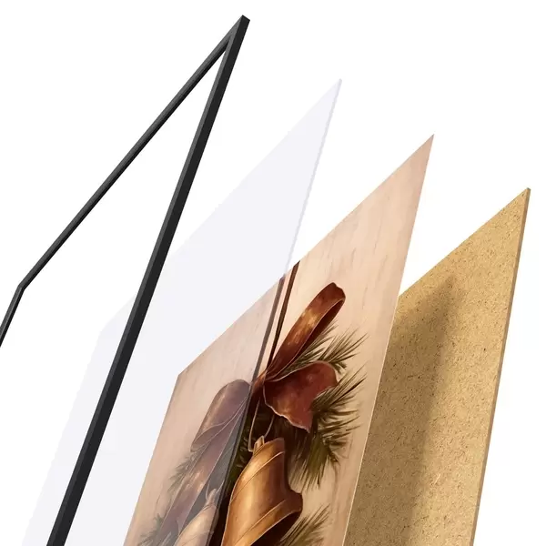 El póster consta de marco, plexiglás, imagen impresa y soporte de aglomerado. El póster puede colgarse inmediatamente en la pared gracias a los soportes de la parte posterior.