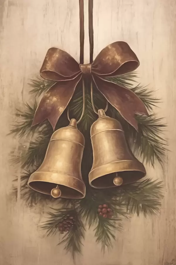 Poster Decoración navideña vintage con dos campanas y un lazo f46626