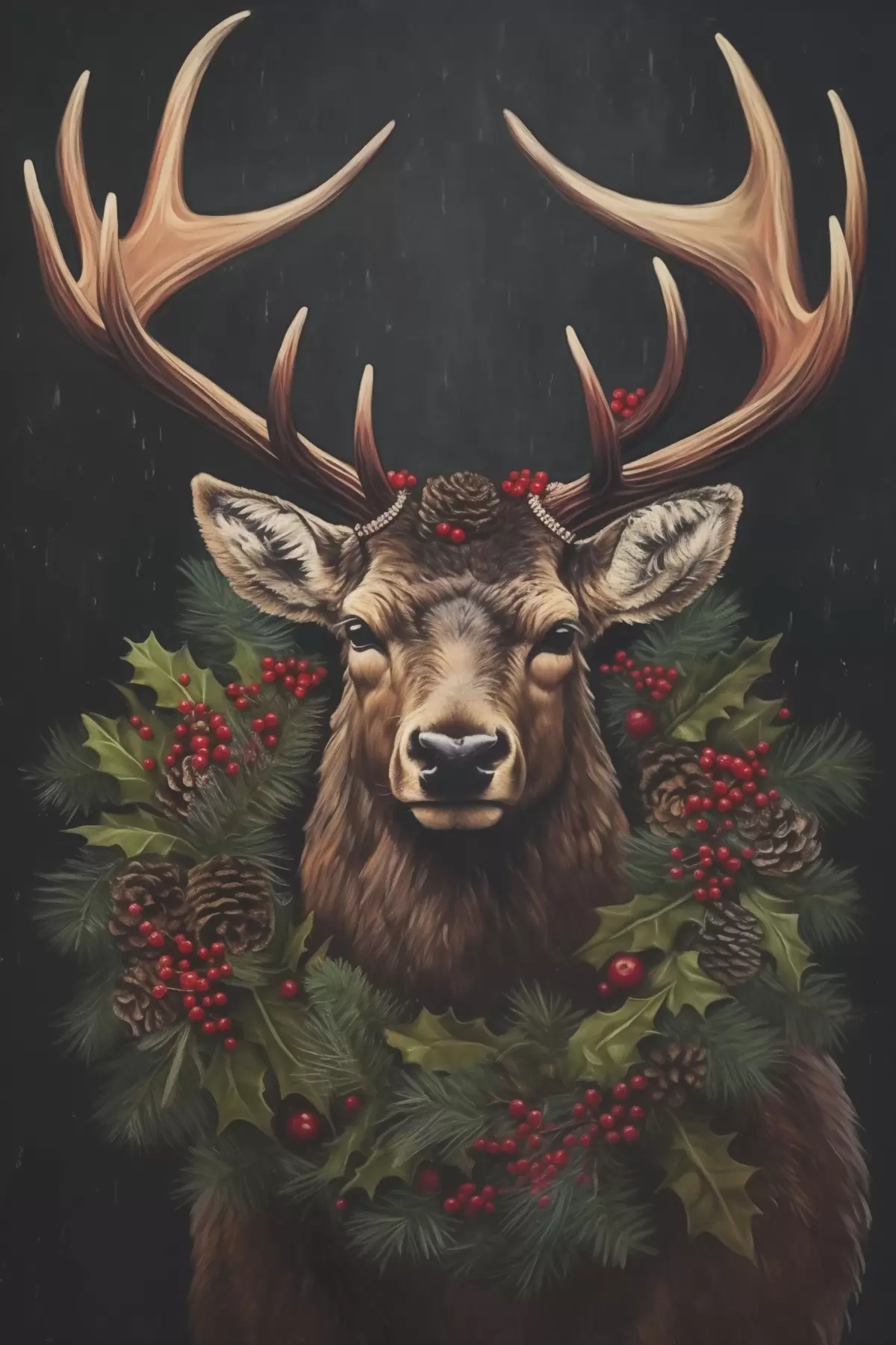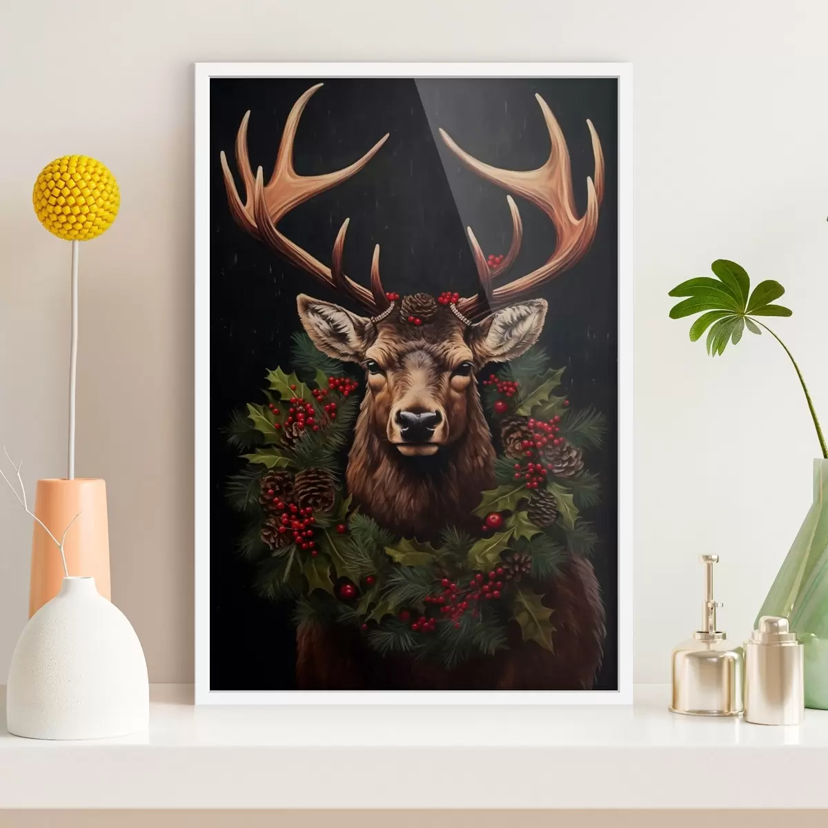 Poster Retrato de un ciervo con una corona navideña Nr f46628