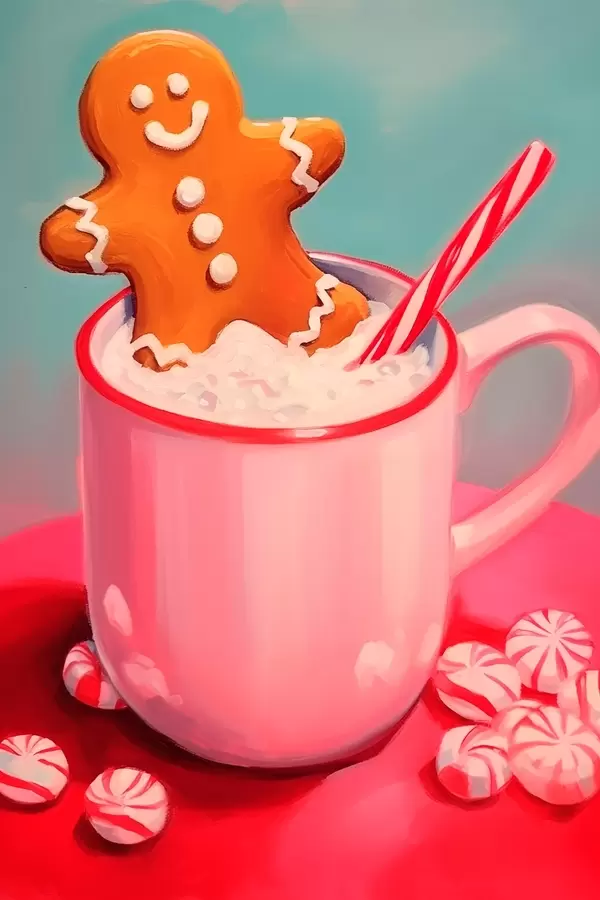 Poster Hombrecito de jengibre en una taza de chocolate caliente Nr f46635