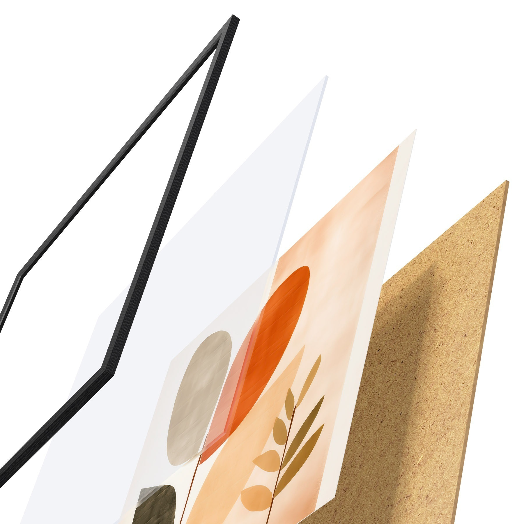 El póster consta de marco, plexiglás, imagen impresa y soporte de aglomerado. El póster puede colgarse inmediatamente en la pared gracias a los soportes de la parte posterior.
