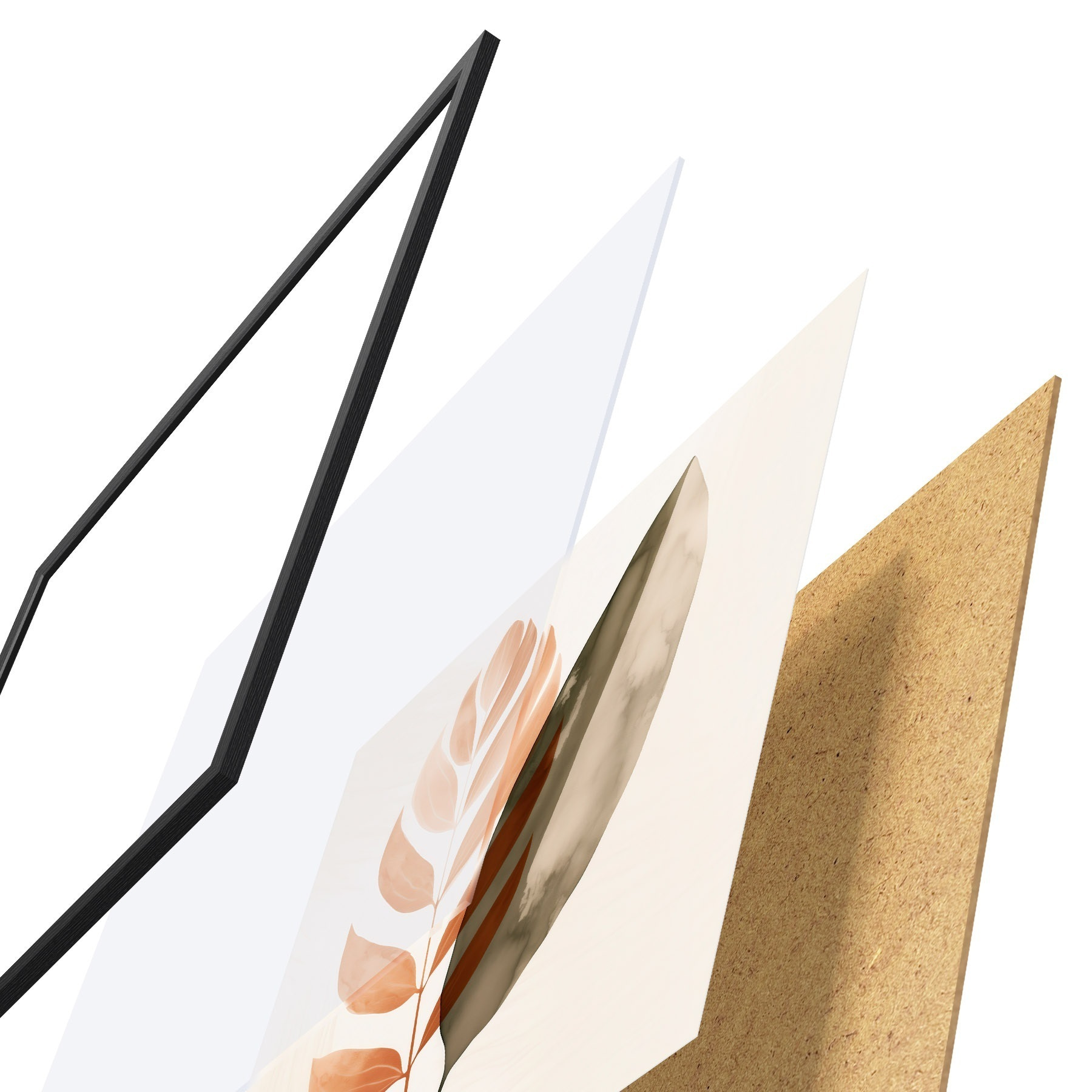 El póster consta de marco, plexiglás, imagen impresa y soporte de aglomerado. El póster puede colgarse inmediatamente en la pared gracias a los soportes de la parte posterior.