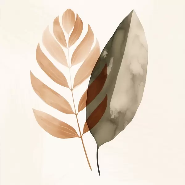 Poster Un dúo de siluetas de hojas en un estilo abstracto de acuarela. f46645