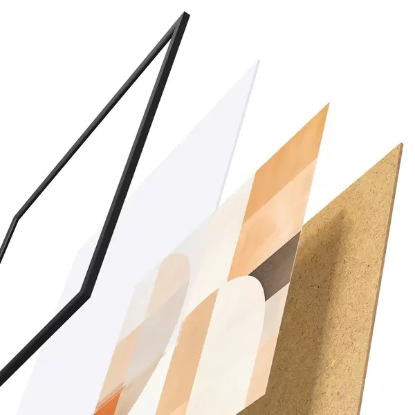 El póster consta de marco, plexiglás, imagen impresa y soporte de aglomerado. El póster puede colgarse inmediatamente en la pared gracias a los soportes de la parte posterior.
