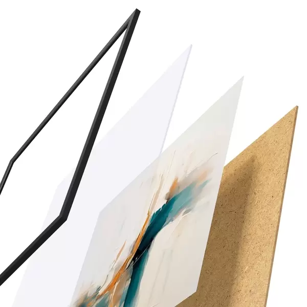 El póster consta de marco, plexiglás, imagen impresa y soporte de aglomerado. El póster puede colgarse inmediatamente en la pared gracias a los soportes de la parte posterior.