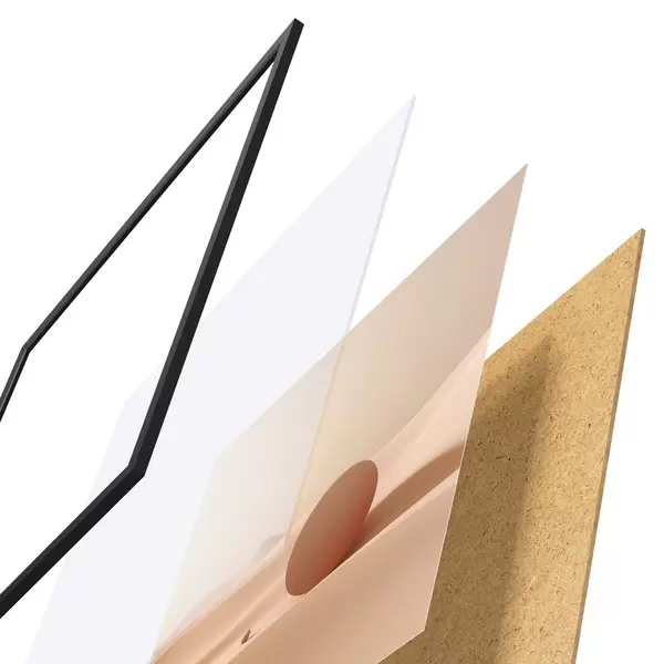 El póster consta de marco, plexiglás, imagen impresa y soporte de aglomerado. El póster puede colgarse inmediatamente en la pared gracias a los soportes de la parte posterior.
