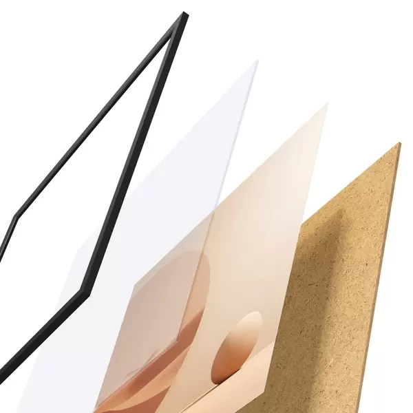 El póster consta de marco, plexiglás, imagen impresa y soporte de aglomerado. El póster puede colgarse inmediatamente en la pared gracias a los soportes de la parte posterior.