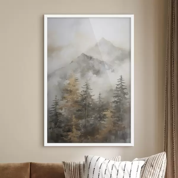Poster Bosque con las montañas como telón de fondo, imitación de pintura. f46670