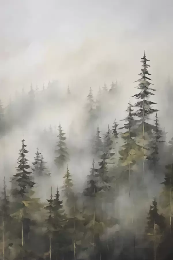 Poster Bosque en la niebla, imitación de pintura Nr f46671