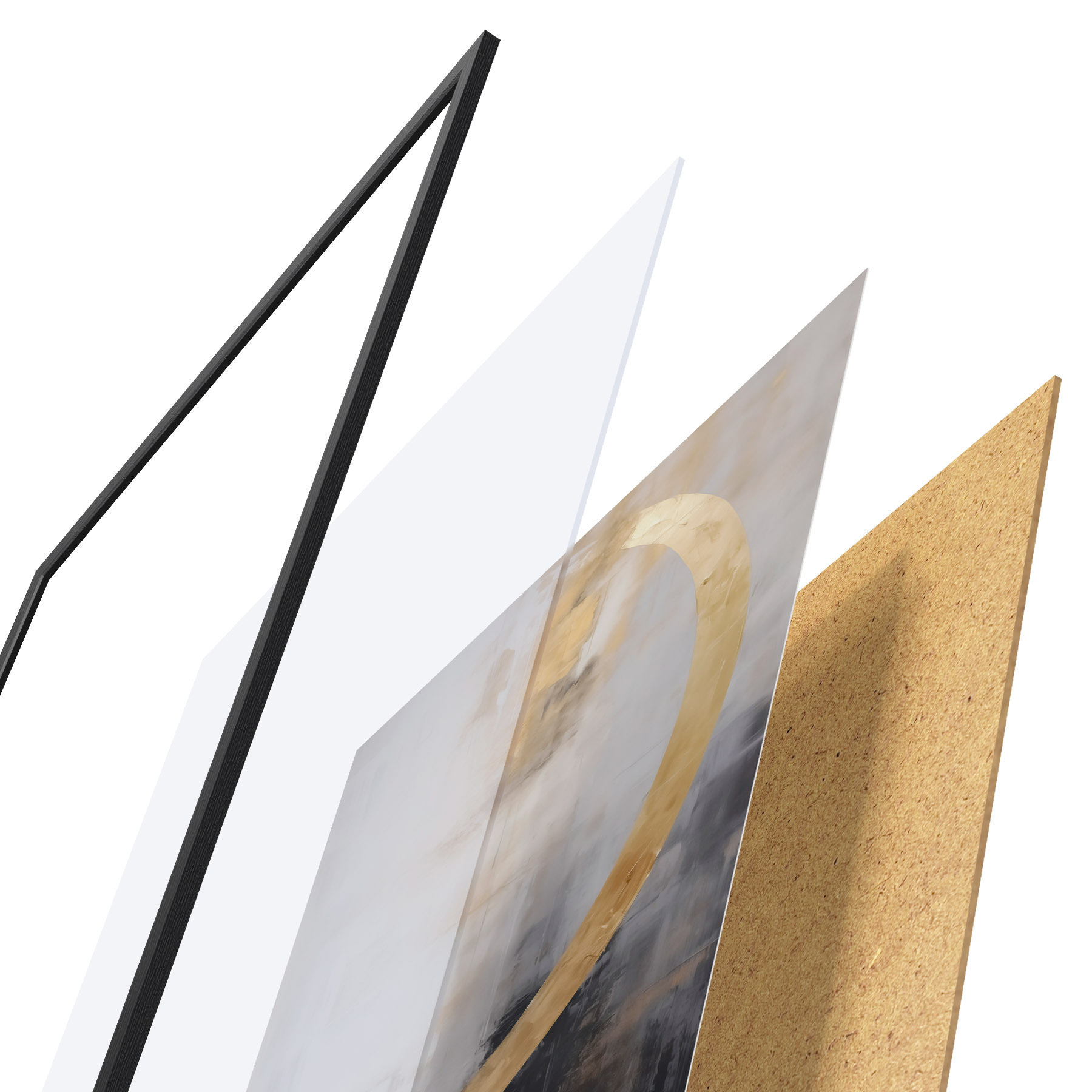 El póster consta de marco, plexiglás, imagen impresa y soporte de aglomerado. El póster puede colgarse inmediatamente en la pared gracias a los soportes de la parte posterior.