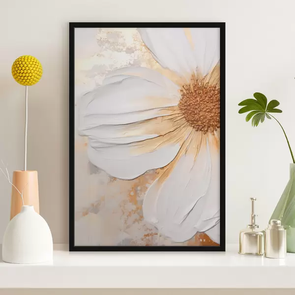 Poster Una flor blanca con pétalos delicados, fondo abstracto con textura, elegante, arte decorativo. Nr f46692