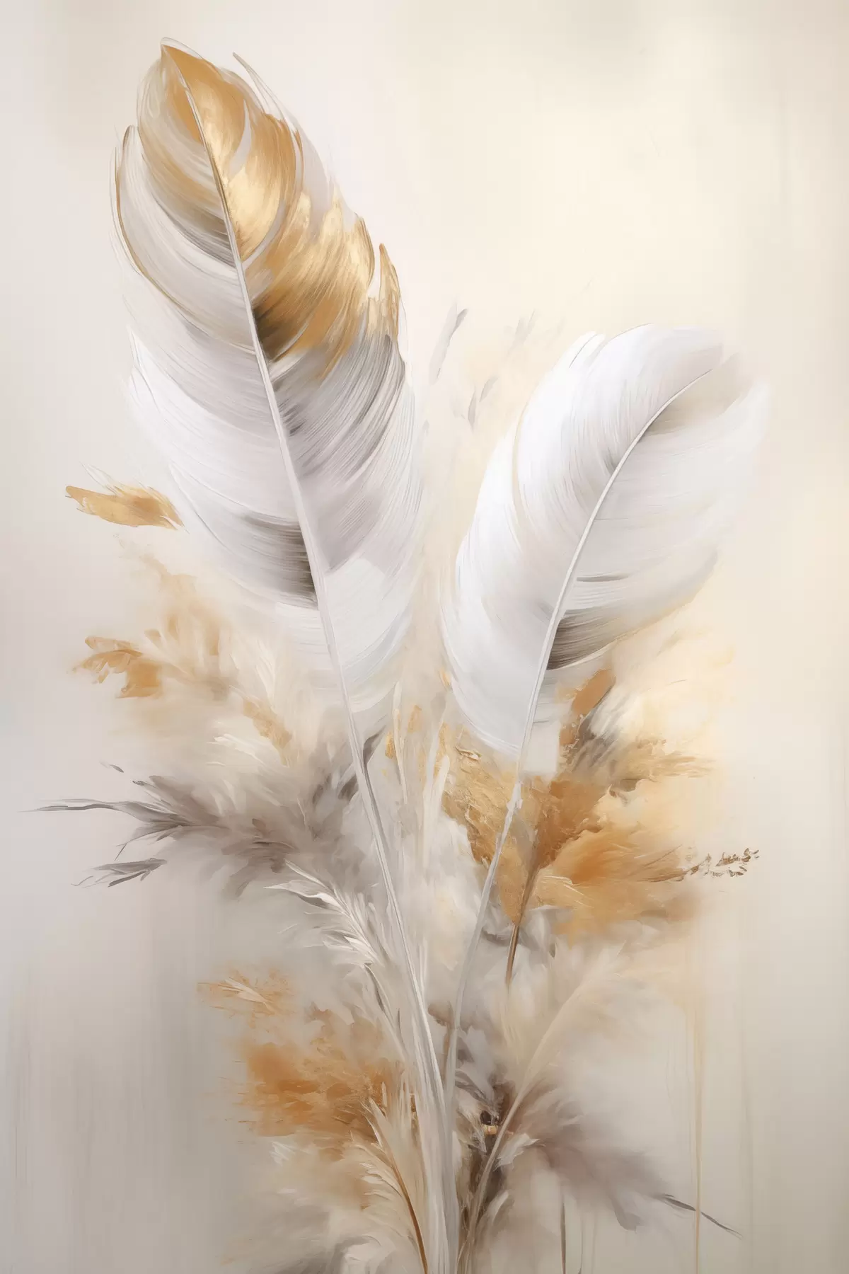 Poster Plumas abstractas, rodeadas de plumas beige y marrones, suaves y delicadas, sobre un fondo beige claro. f46711