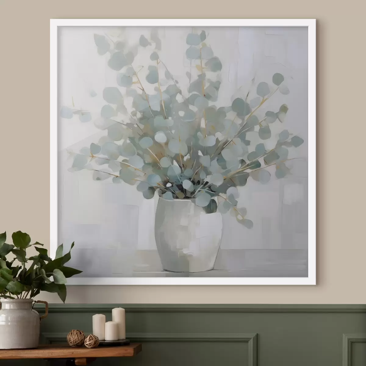 Poster Ramas de eucalipto en un jarrón, pintura de imitación. f46713