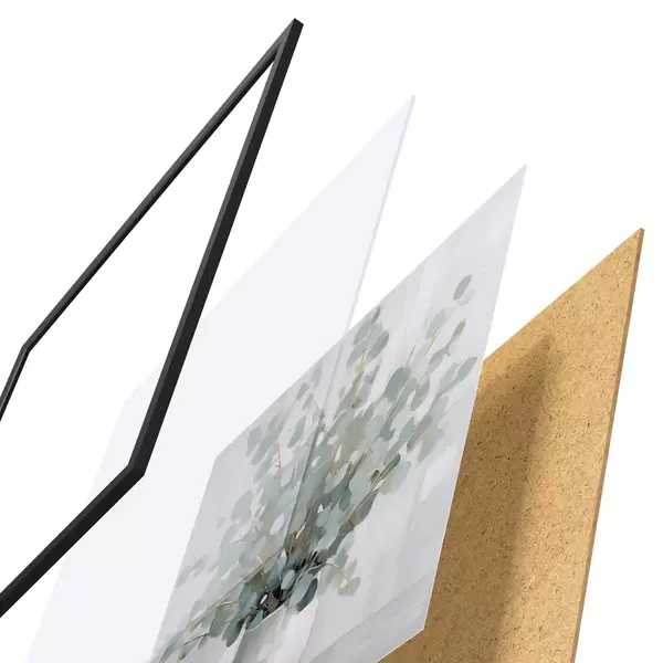 El póster consta de marco, plexiglás, imagen impresa y soporte de aglomerado. El póster puede colgarse inmediatamente en la pared gracias a los soportes de la parte posterior.